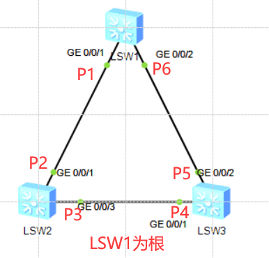 1、在选出根桥后,由根桥LSW1始发BPDU,根桥上所有DP/Disca状态的接口发送P置位的BPDU。